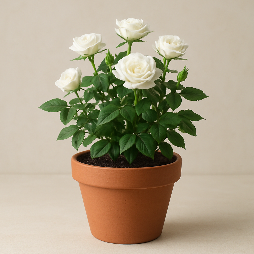 🌹 Miniature White Rose (Button Rose) Plant – With Pot